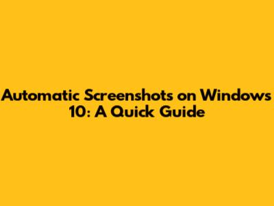 Automatic Screenshots On Windows 10: A Quick Guide