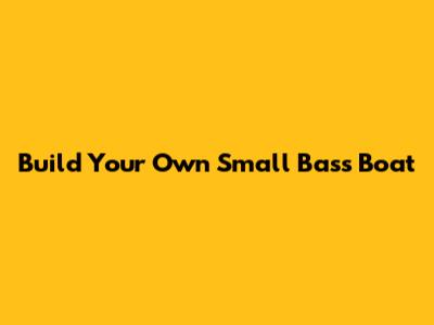 Build Your Own Small Bass Boat