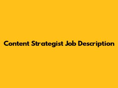 Content Strategist: Job Description & Key Responsibilities