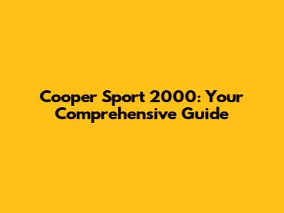 Cooper Sport 2000: Ultimate Guide & Repair Tips
