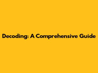 Decoding: A Comprehensive Guide