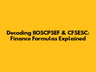 Hey guys! Ever stumbled upon the acronyms IIOSCPSEF and CFSESC and felt like you were trying to decipher an alien language? Well, you're not alone! These terms pop up in the financial world, especially in specific contexts, and understanding them can be super helpful. So, let's break down these finance formulas in a way that's easy to grasp. Think of this as your friendly guide to navigating these financial abbreviations. We'll explore what they stand for, how they're used, and why they matter. Ready to dive in? Let's get started!
