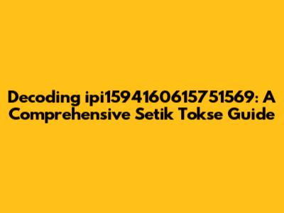 Decoding Ipi1594160615751569: A Comprehensive Setik Tokse Guide
