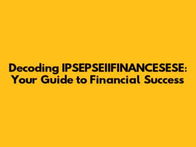 Decoding IPSEPSEIIFINANCESESE: Your Guide To Financial Success