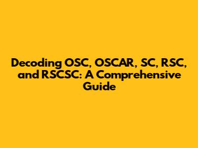 Decoding OSC, OSCAR, SC, RSC, And RSCSC: A Comprehensive Guide