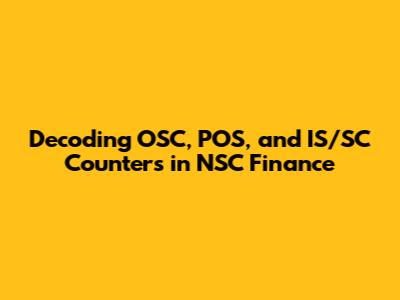 Hey guys! Ever stumbled upon those acronyms – OSC, POS, and IS/SC – while navigating the world of NSC (National Savings Certificate) finance? If you're scratching your head, you're definitely not alone. These terms are super important when understanding how your money moves and how the counters work within the NSC framework. Let’s break it down and get you up to speed. We'll delve into each of these counters, explaining what they mean, how they operate, and why they matter for your investments. This guide is designed to be your go-to resource, making sure you feel confident and informed about your NSC journey. Ready? Let's dive in!