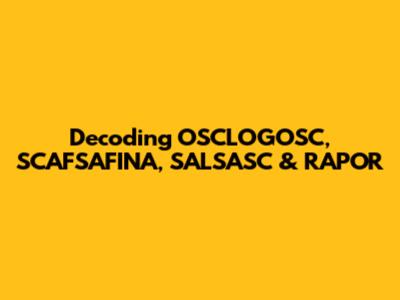 Let's dive deep into understanding the terms OSCLOGOSC, SCAFSAFINA, SALSASC, and RAPOR. This article aims to break down these potentially complex terms, providing clarity and insight into what they represent. Whether you've encountered these acronyms in technical documentation, academic papers, or industry-specific discussions, a comprehensive understanding is crucial. We'll explore each term individually, examining its origins, applications, and significance in its respective field. Our goal is to transform these seemingly obscure terms into accessible knowledge, empowering you with the ability to confidently engage with them in any context. So, get ready to embark on a journey of discovery as we unravel the meanings behind OSCLOGOSC, SCAFSAFINA, SALSASC, and RAPOR.