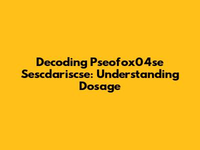 Decoding Pseofox04se Sescdariscse: Understanding Dosage