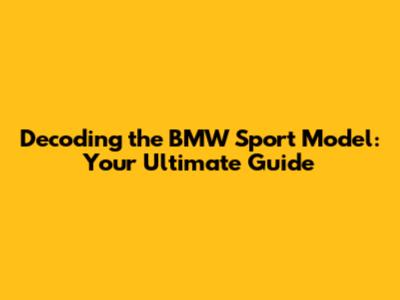 Decoding the BMW Sport Model: Your Ultimate Guide