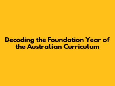 Decoding The Foundation Year Of The Australian Curriculum