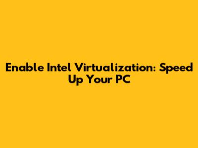 Enable Intel Virtualization: Speed Up Your PC