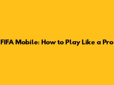 FIFA Mobile: How To Play Like A Pro