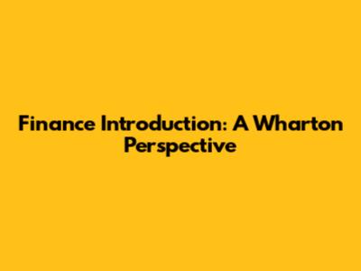 Finance Introduction: A Wharton Perspective