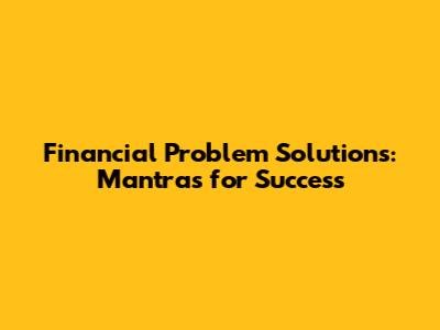 Financial Problem Solutions: Mantras For Success