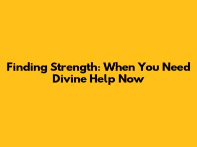 Finding Strength: When You Need Divine Help Now
