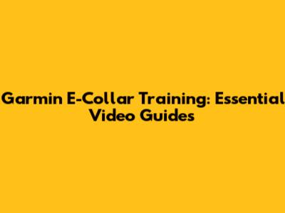 Garmin E-Collar Training: Essential Video Guides