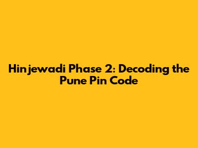 Hinjewadi Phase 2: Decoding The Pune Pin Code