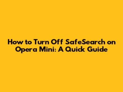 How To Turn Off SafeSearch On Opera Mini: A Quick Guide