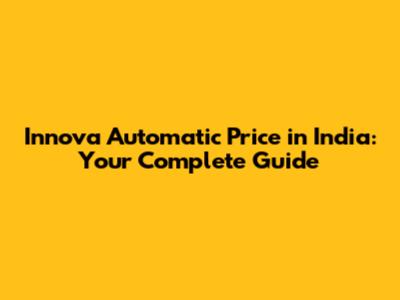 Innova Automatic Price In India: Your Complete Guide