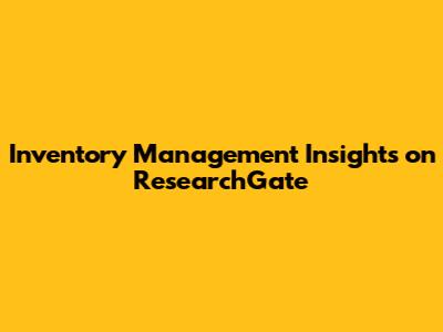 Inventory Management Insights On ResearchGate