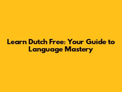 Learn Dutch Free: Your Guide To Language Mastery