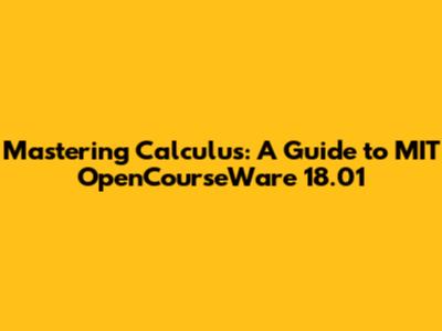 Mastering Calculus: A Guide To MIT OpenCourseWare 18.01