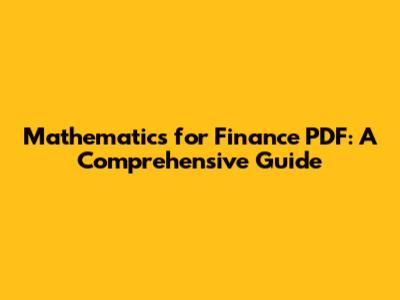 Mathematics For Finance PDF: A Comprehensive Guide