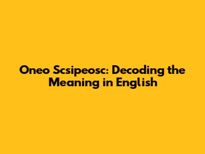 Oneo Scsipeosc: Decoding The Meaning In English