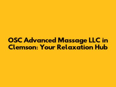 OSC Advanced Massage LLC In Clemson: Your Relaxation Hub