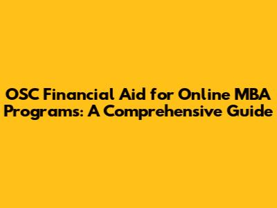 OSC Financial Aid For Online MBA Programs: A Comprehensive Guide