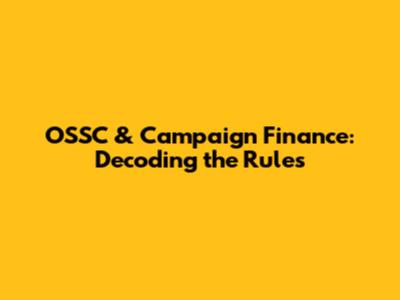 OSSC & Campaign Finance: Decoding The Rules