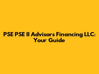 PSE PSE II Advisors Financing LLC: Your Guide