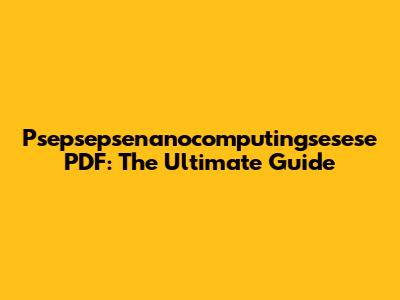 Psepsepsenanocomputingsesese PDF: The Ultimate Guide