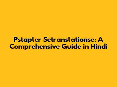 Pstapler Setranslationse: A Comprehensive Guide In Hindi