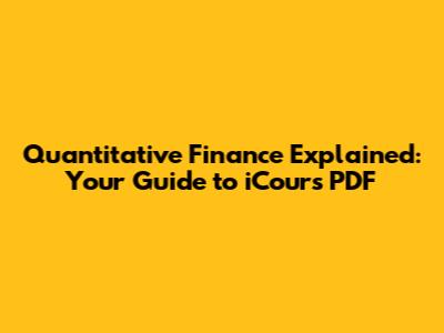 Quantitative Finance Explained: Your Guide To ICours PDF