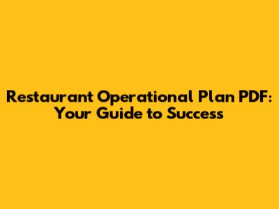 Restaurant Operational Plan PDF: Your Guide To Success