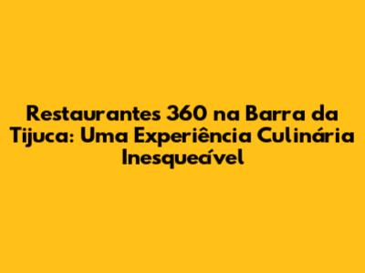 Restaurantes 360 Na Barra Da Tijuca: Uma Experiência Culinária Inesquecível