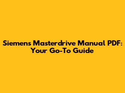 Siemens Masterdrive Manual PDF: Your Go-To Guide