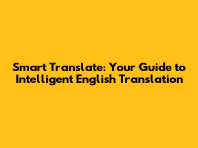 Smart Translate: Your Guide To Intelligent English Translation