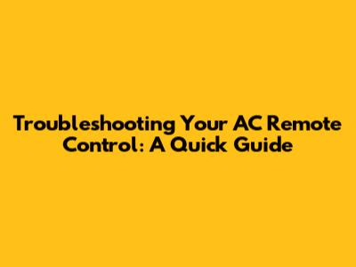 Troubleshooting Your AC Remote Control: A Quick Guide