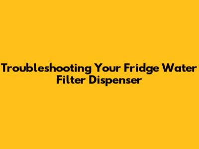 Troubleshooting Your Fridge Water Filter Dispenser