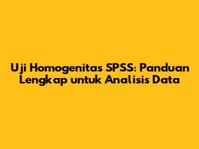 Hey guys! Pernah denger tentang uji homogenitas? Atau lagi pusing mikirin gimana caranya ngelakuin uji ini pakai SPSS? Tenang, kalian gak sendirian! Uji homogenitas itu penting banget dalam analisis data, terutama kalau kalian mau pakai metode statistik yang asumsinya mengharuskan data kalian homogen. Nah, di artikel ini, kita bakal bahas tuntas tentang uji homogenitas, khususnya gimana caranya pakai SPSS buat nguji data kalian. Yuk, simak!