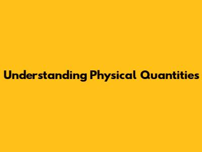 Understanding Physical Quantities