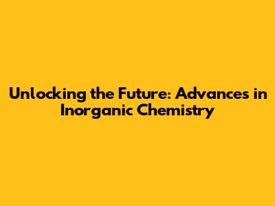 Unlocking The Future: Advances In Inorganic Chemistry