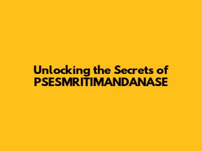 Unlocking The Secrets Of PSESMRITIMANDANASE