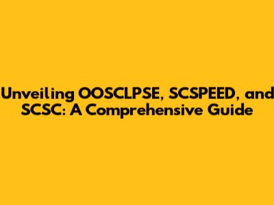 Unveiling OOSCLPSE, SCSPEED, And SCSC: A Comprehensive Guide